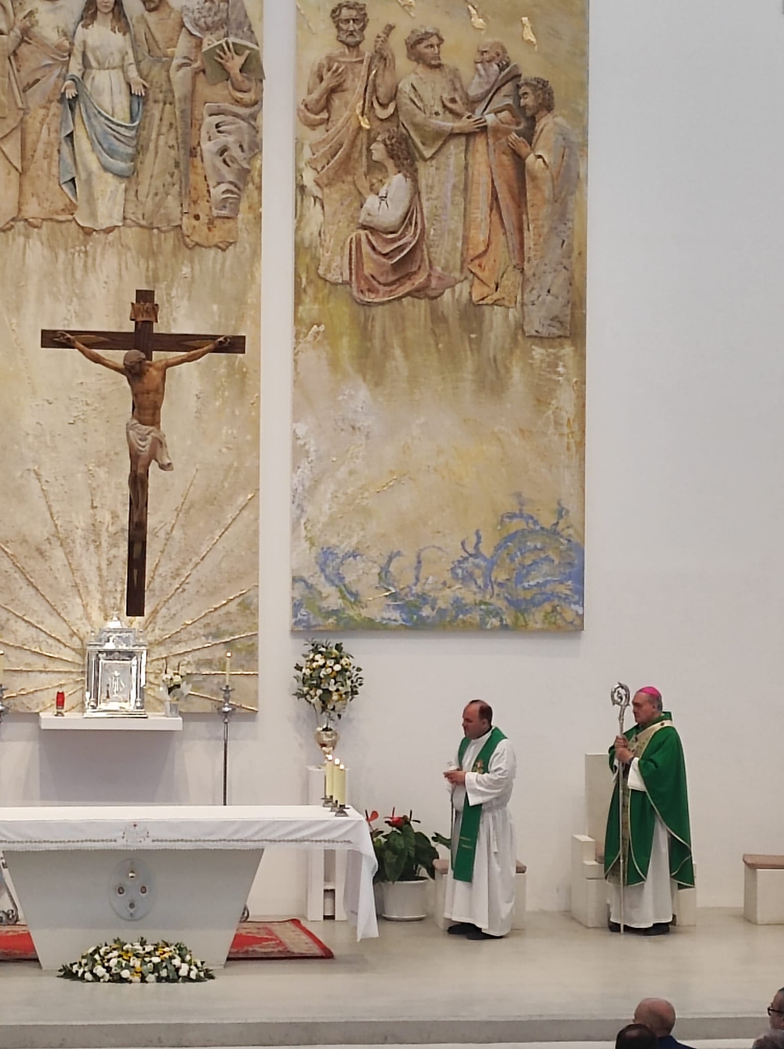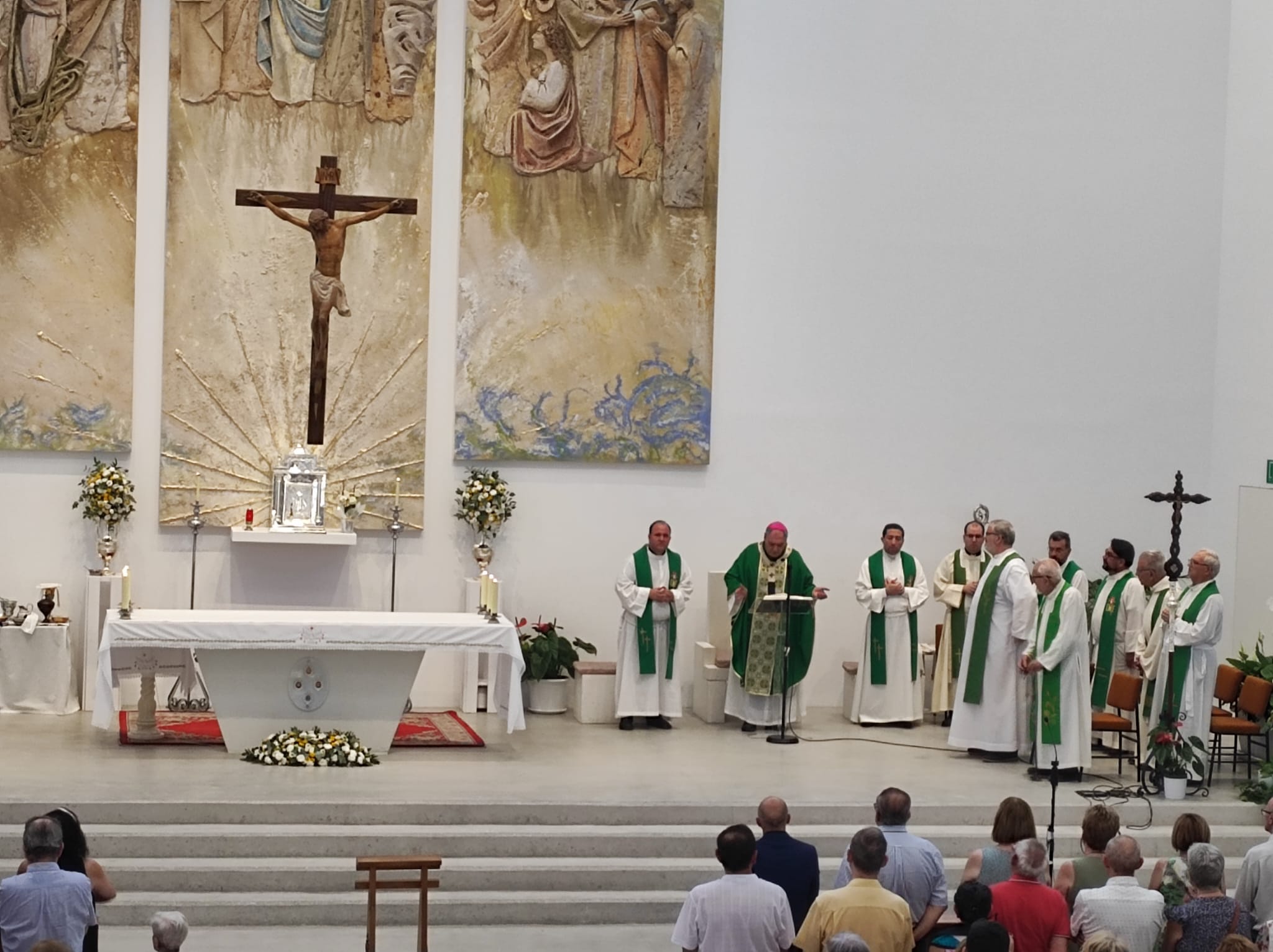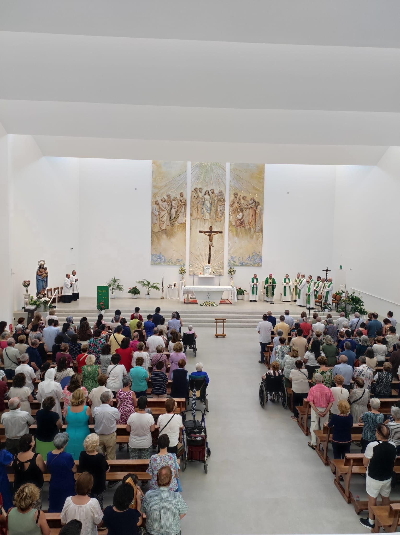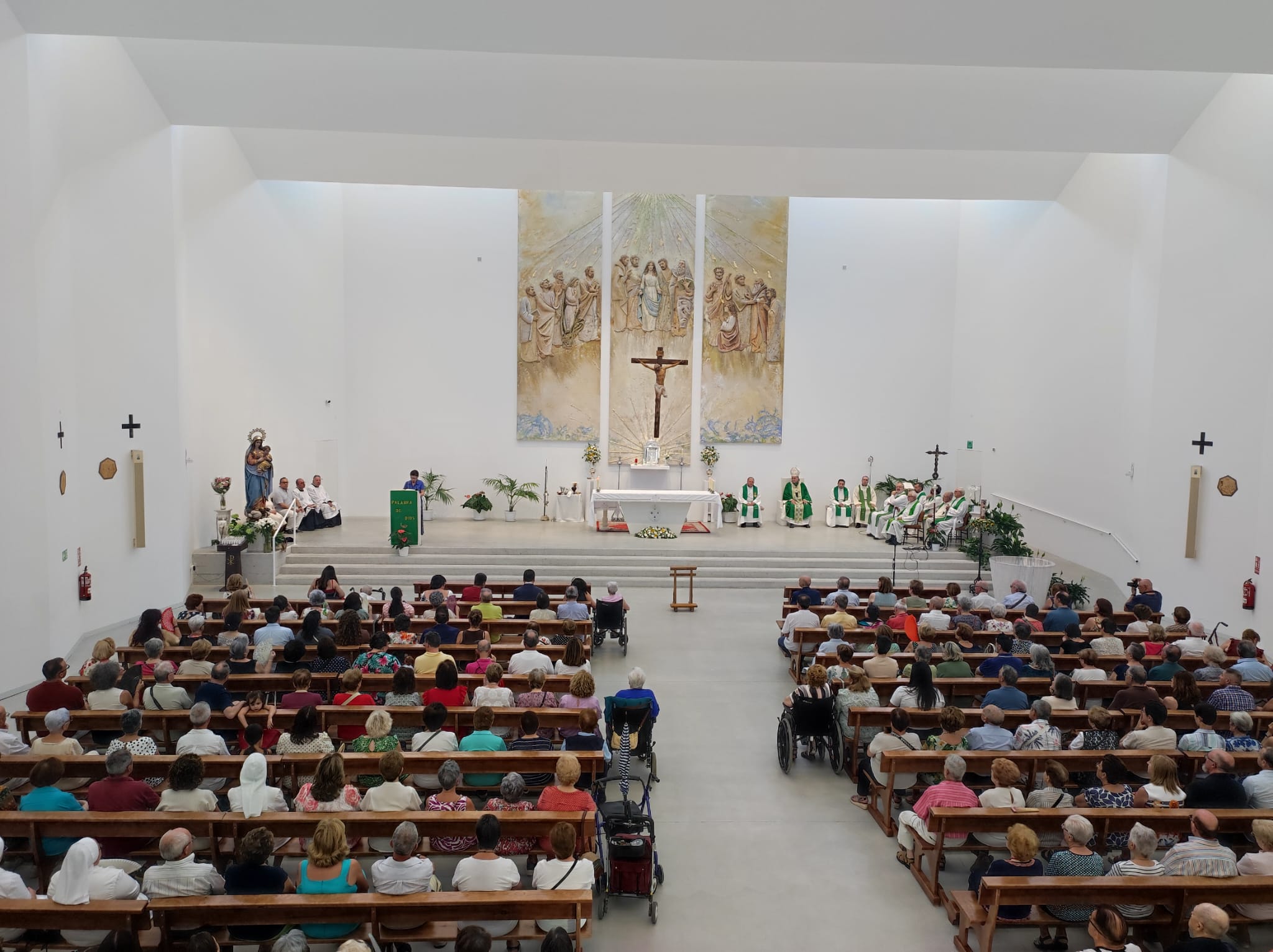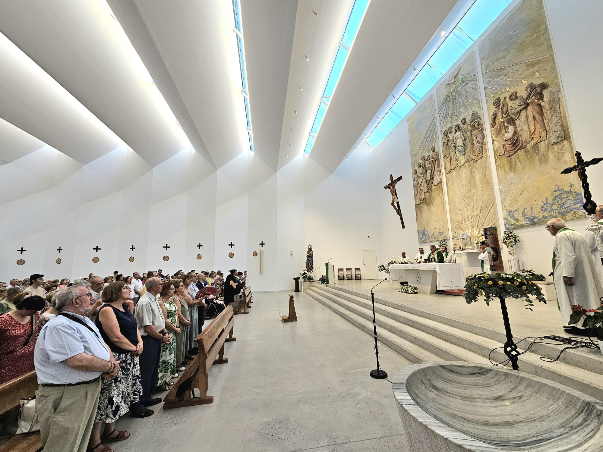 El arzobispo Mons. José María Gil Tamayo presidió la ceremonia de bendición, acompañado por el párroco D. Juan Jesús Gea y otros sacerdotes de la comunidad claretiana. Numerosos feligreses participaron en esta celebración, que marca un hito en la vida de esta joven parroquia, consagrada oficialmente en septiembre de 2022 tras años en locales provisionales.