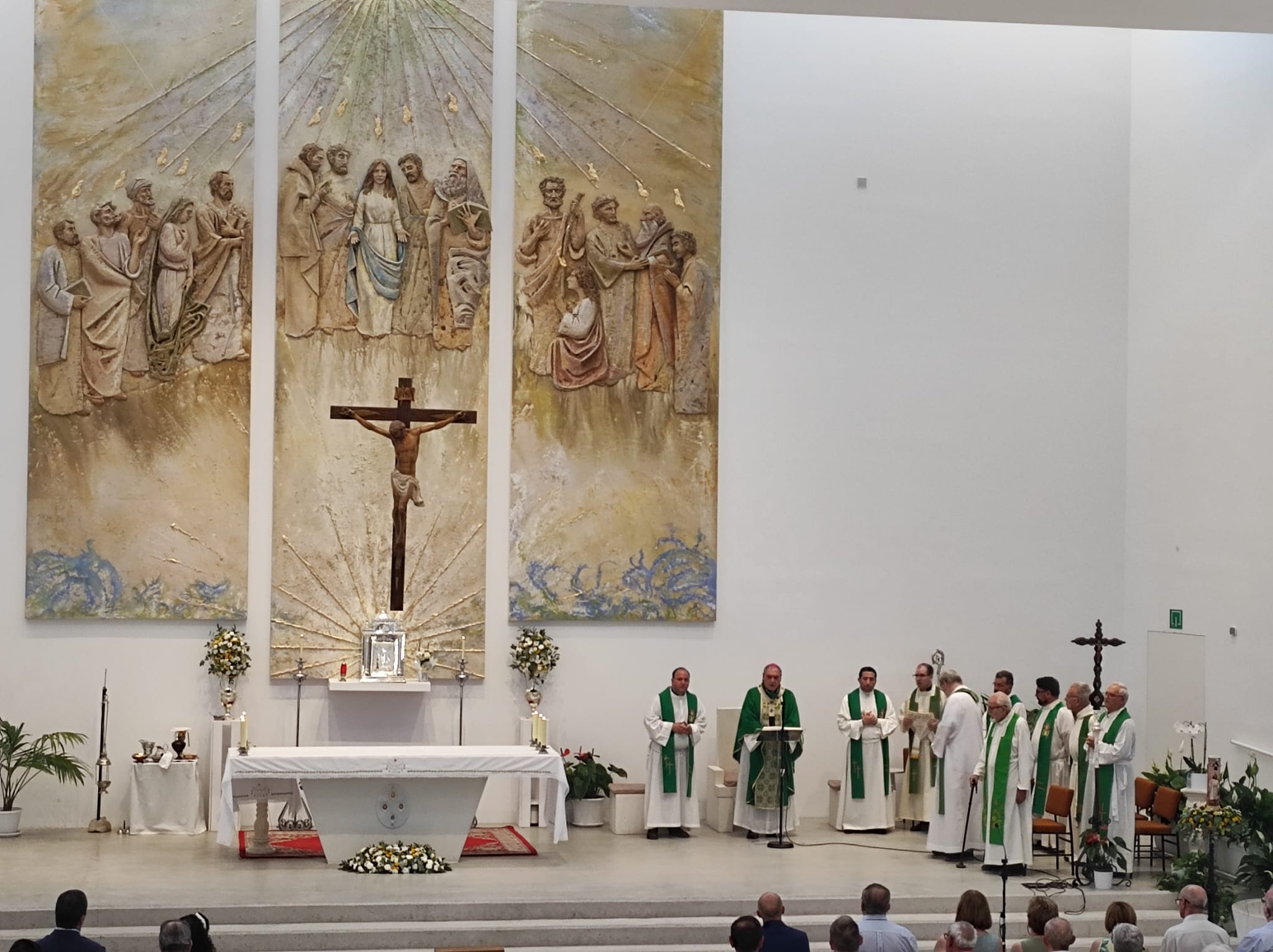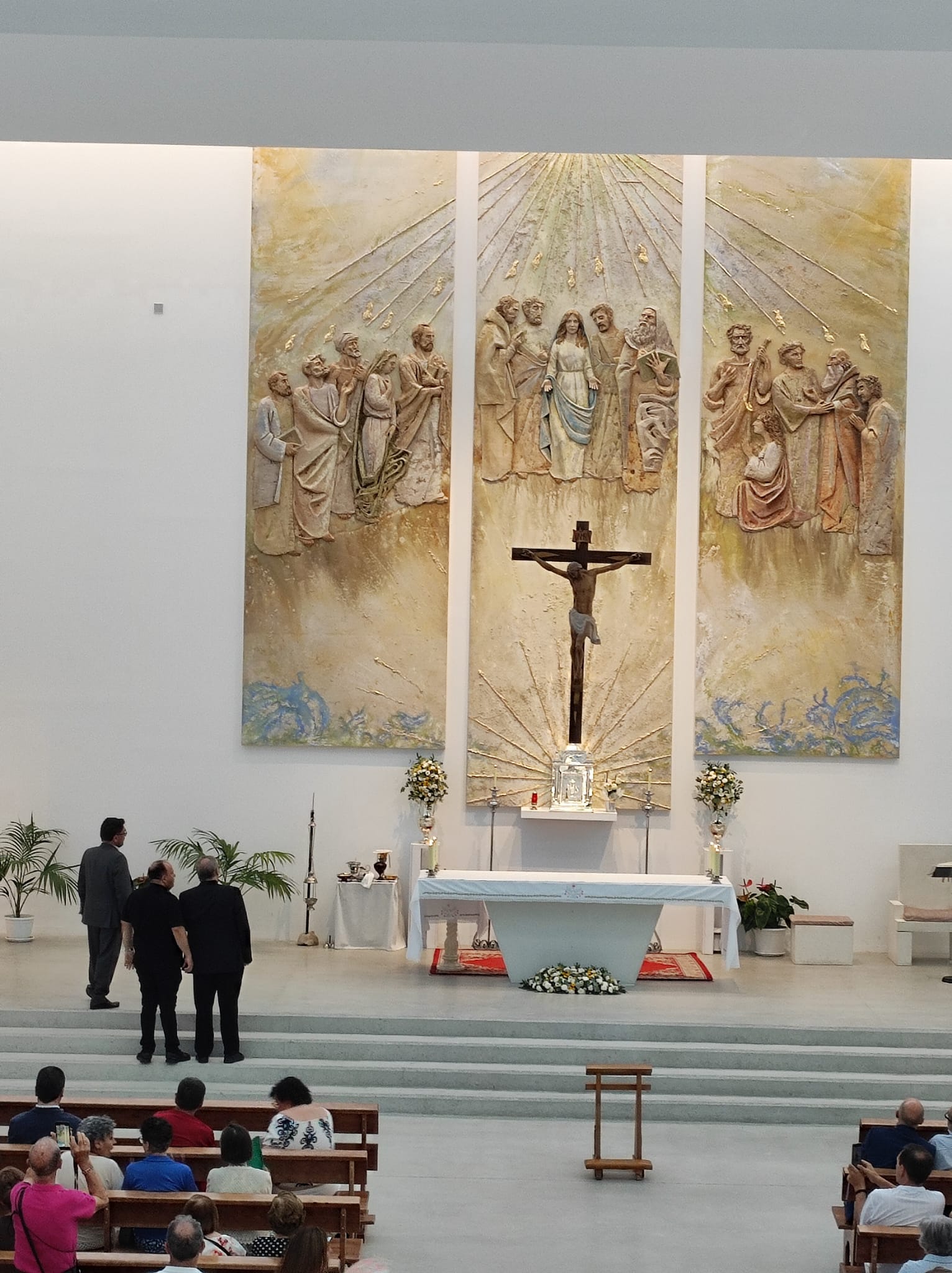 El pasado sábado 12 de julio, la comunidad de la parroquia Espíritu Santo, situada en la calle Joaquina Eguaras de Granada, vivió una jornada cargada de emoción y significado espiritual con la bendición oficial de su nuevo retablo de Pentecostés, una majestuosa obra que representa la venida del Espíritu Santo sobre los apóstoles y la Virgen María.