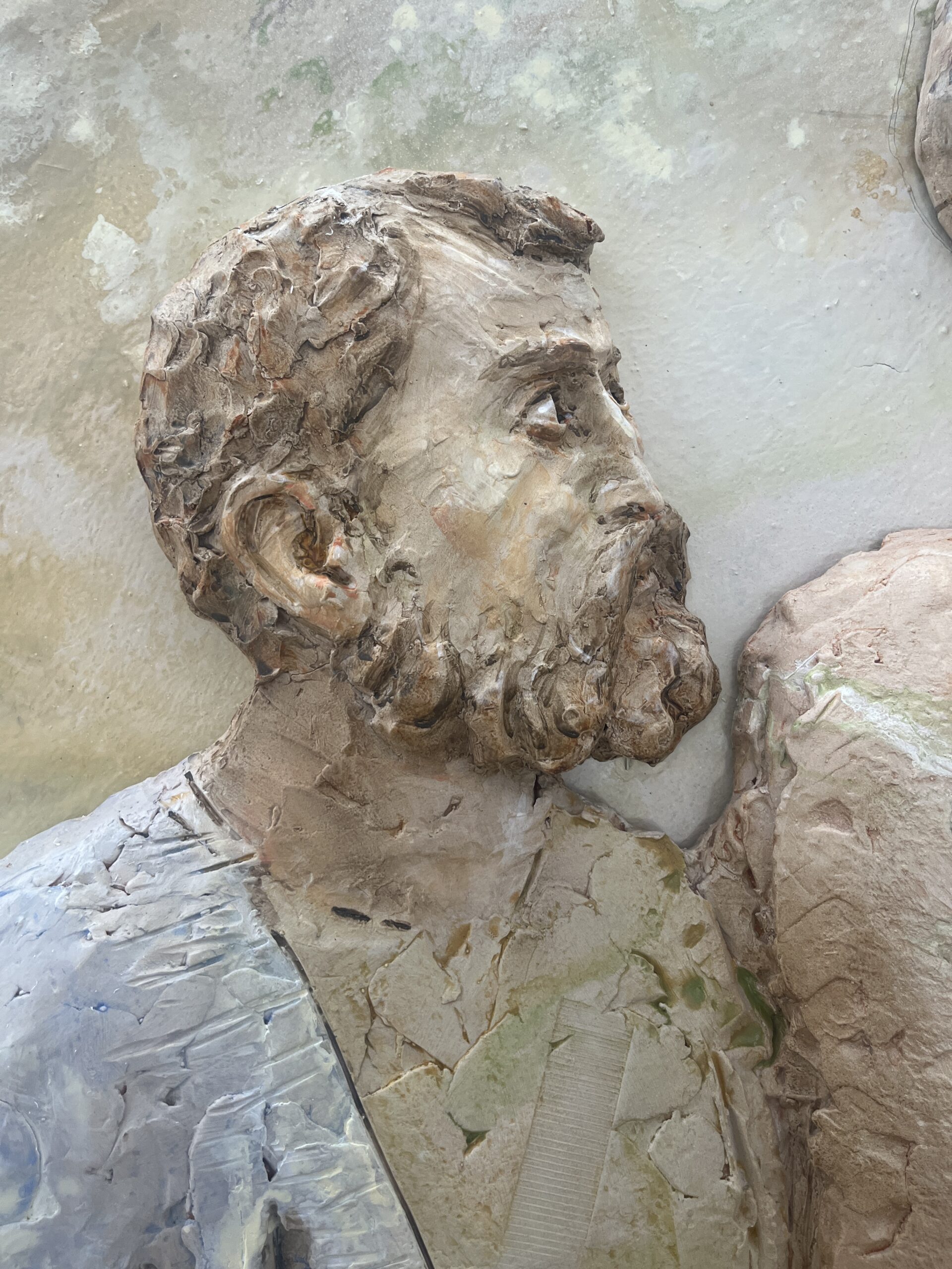 La escena representada remite al relato de los Hechos de los Apóstoles: el descenso del Espíritu Santo en forma de lenguas de fuego que impulsó a los discípulos a salir del cenáculo y anunciar el Evangelio al mundo. En el centro, la Virgen María, símbolo de unidad y perseverancia, acoge y sostiene a la comunidad apostólica. Según explica Juan Carlos Martínez, escultor responsable del proyecto, “cada apóstol refleja un don del Espíritu Santo”, y junto a ellos se representan también los carismas paulinos mencionados en la Primera Carta a los Corintios.