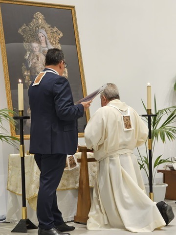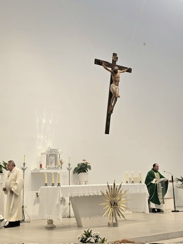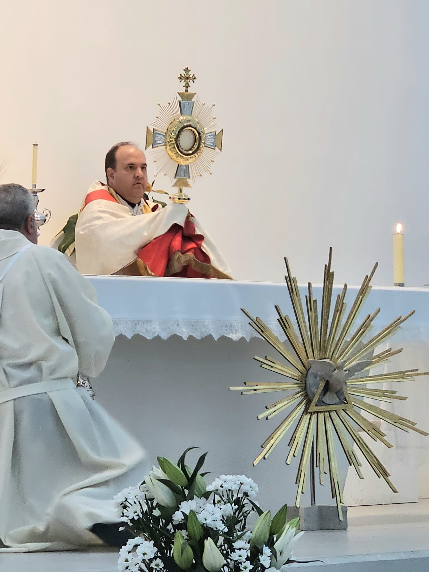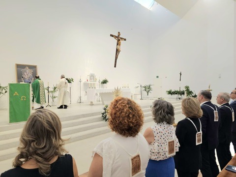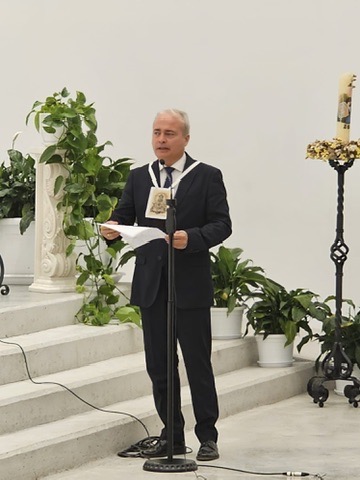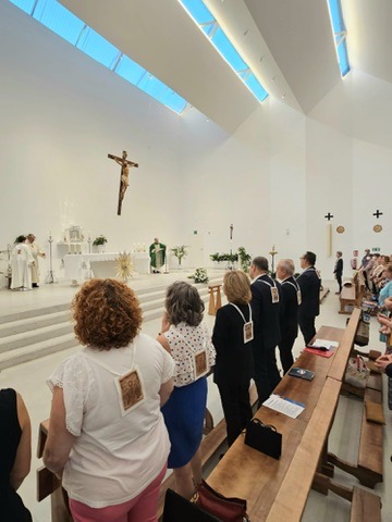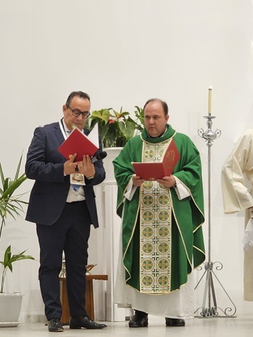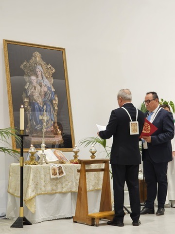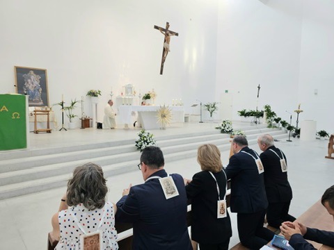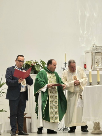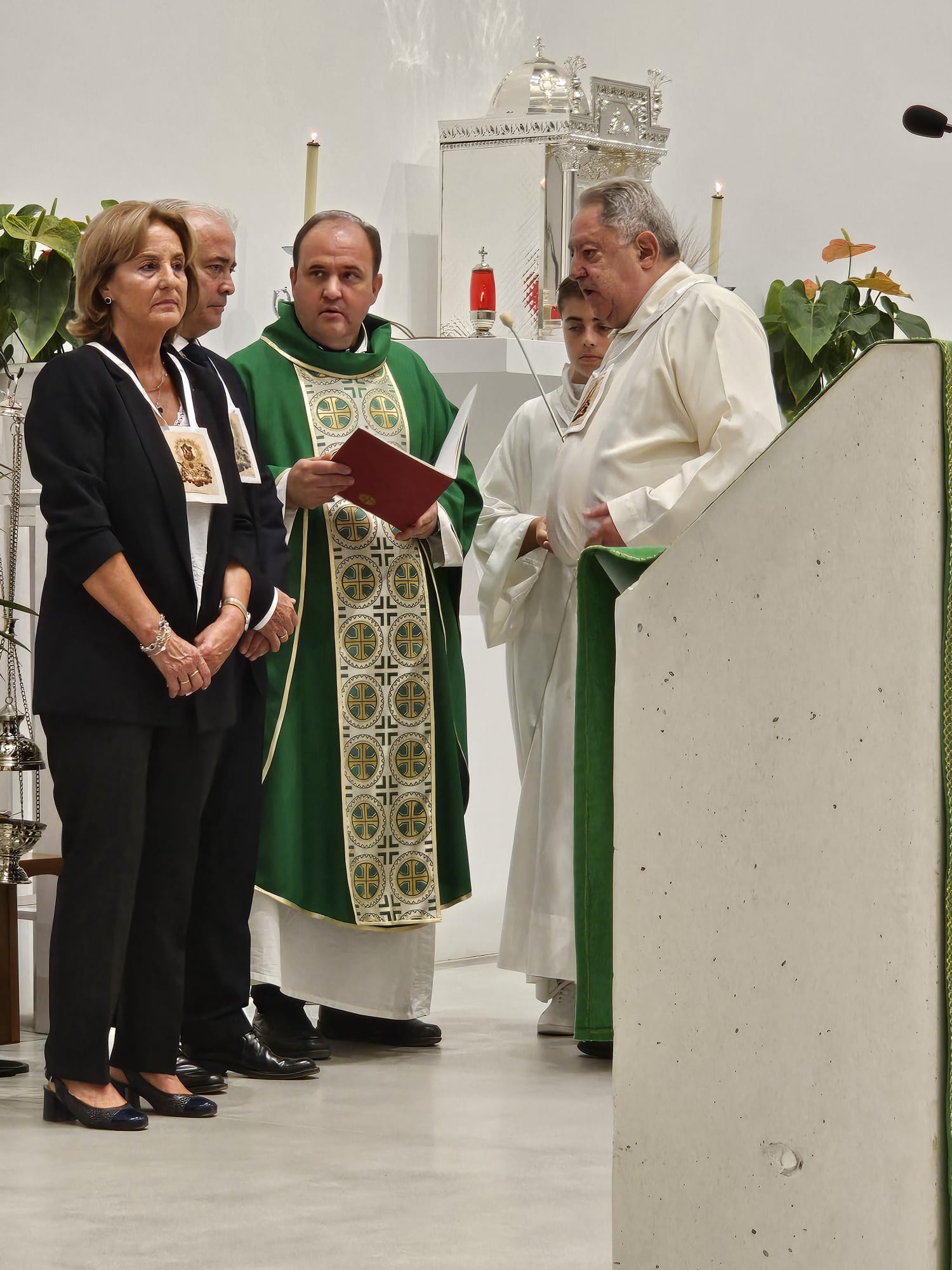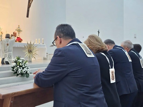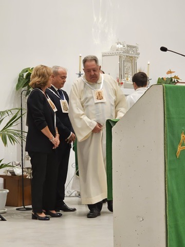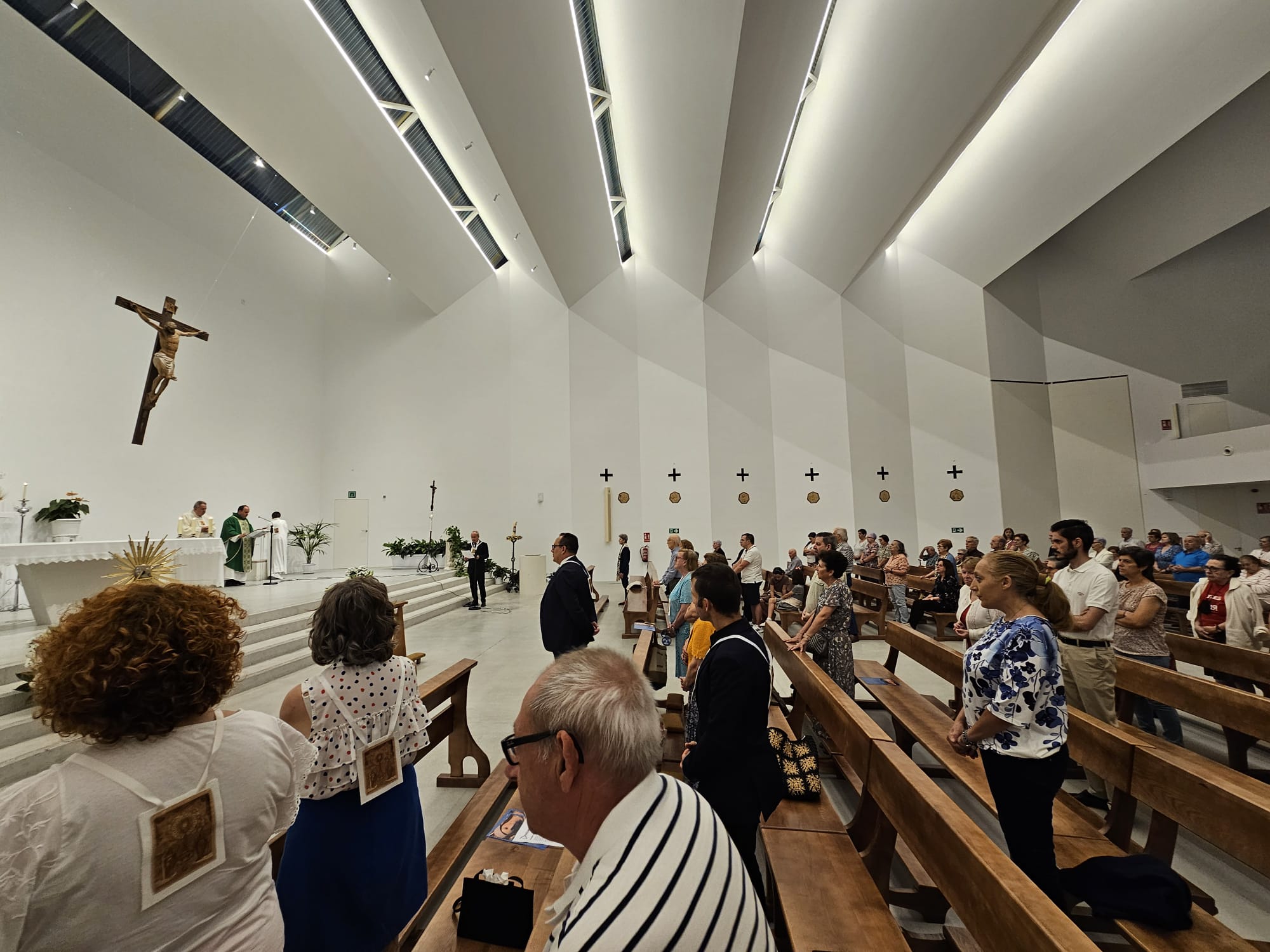 Más tarde, a las 19:30, se celebró la misa solemne dedicada al Sagrado Corazón de María. Bajo su protección, los integrantes de la Junta prometieron servir y mantener vivos los valores de la Archicofradía. Durante la ceremonia, cada miembro expresó su compromiso de servicio con escapularios al cuello, simbolizando su entrega y devoción a María y a la comunidad.